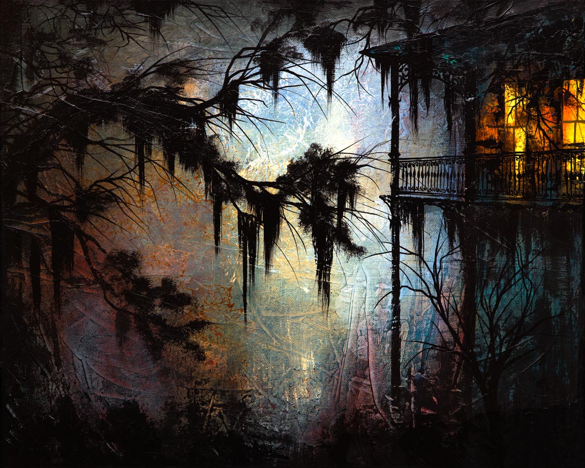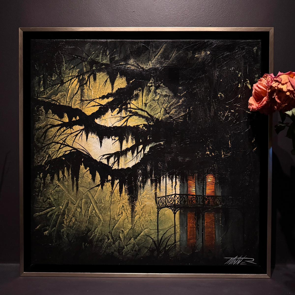 Over the years, Tanner’s work has traveled far beyond Royal Street, finding collectors around the world. Yet everything he paints connects back to a sense of dark optimism and a deep connection with nature. In this case, it is the Louisiana landscape that continually anchors his vision, both haunting and full of light. In a city that celebrates its artists as much as its music, Tanner stands as a painter of consistent momentum, forever searching to create his best work yet.