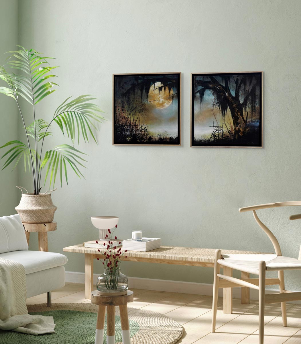In the quiet town of Semmes, Alabama, where pine trees stretch skyward and cicadas sing the soundtrack of summer, Tanner discovered his first refuge. With a sketchbook in hand, he would disappear into the woods, finding peace and inspiration beneath the green canopy. The forest, dense, shadowed, and alive with color, became his earliest muse. Those childhood moments among the trees planted the seeds for an artistic journey that would one day take root in New Orleans. Today, Tanner is celebrated for his hauntingly beautiful landscape paintings, ethereal, dreamlike visions that seem to hum with the same stillness and mystery as the woods of his youth.